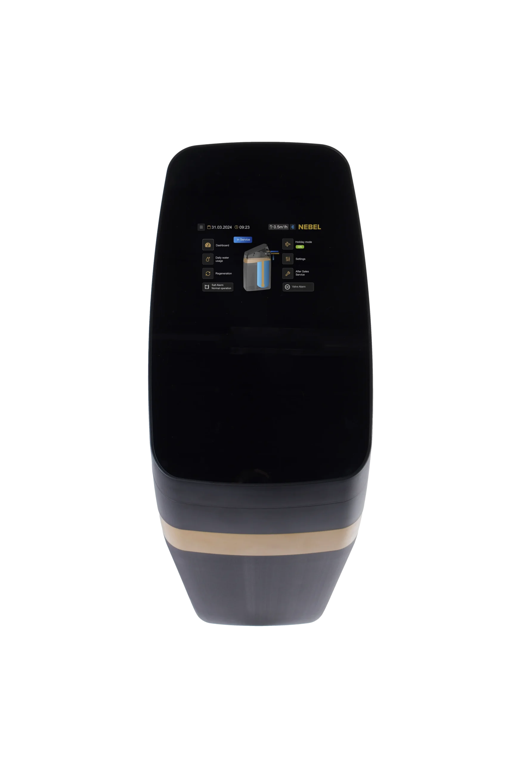 NEBEL es un descalcificador inteligente con pantalla táctil integrada, funcionamiento ecológico y monitorización conectada. Con solo una mirada a la pantalla táctil integrada de 7”, puede ver el funcionamiento de su dispositivo. Además, la aplicación Bluetooth conectada le permite supervisar su descalcificador y su consumo de agua a distancia. Gracias a su tecnología inteligente, NEBEL consume una cantidad mínima de agua y sal.